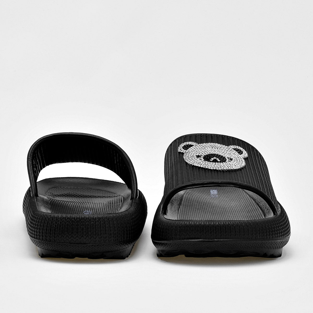 La suela gruesa de estas sandalias garantiza la máxima comodidad mientras caminas sobre la arena o te relajas junto a la piscina. Su diseño resistente y duradero te permitirá disfrutar de tus aventuras acuáticas sin preocupaciones.  Pero lo que hace que estas sandalias sean verdaderamente especiales es la carita de osito en la chinela. Este encantador detalle agrega un toque de dulzura y diversión a tus días de verano.