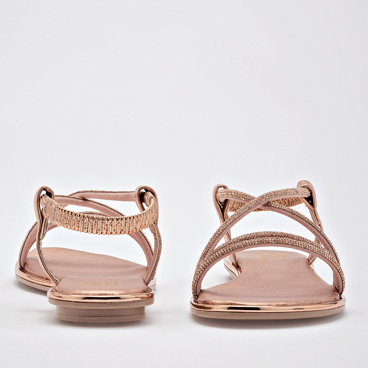 Estas sandalias planas combinan estilo y comodidad a la perfección. Su diseño sencillo y atemporal, con tiras trenzadas en dorado, las hace ideales para el día a día y ocasiones especiales.