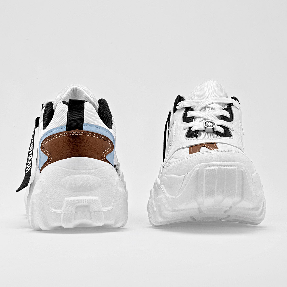 Tenis suela chunky que aporta un toque de tendencia y comodidad a tu look. Sus detalles en café son el toque de contraste que realza el diseño del calzado. Además cuenta con una tira de la marca, un detalle distintivo que te hará destacar y ajuste con cordones.