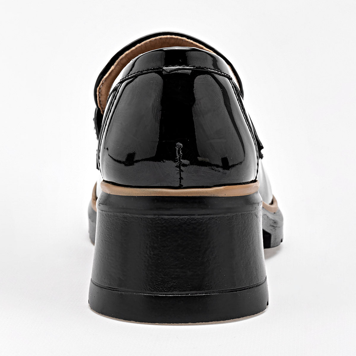 Descubre la comodidad y el estilo con nuestros mocasines de mujer. Este modelo presenta un diseño moderno y versátil, de piel sintética con acabado brillante le da un toque cómodo, mientras que la suela gruesa y la hebilla metálica dorada añaden un detalle único.