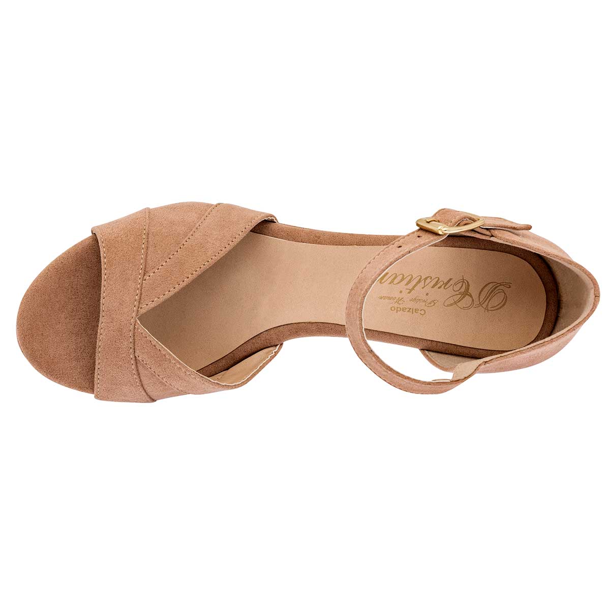 Zapatilla elegante en material de ante, con un sofisticado diseño estilo boca de pescado. Su tacón de 9 cm proporciona altura y una silueta estilizada, mientras que la pulsera ajustable asegura un ajuste cómodo y seguro.