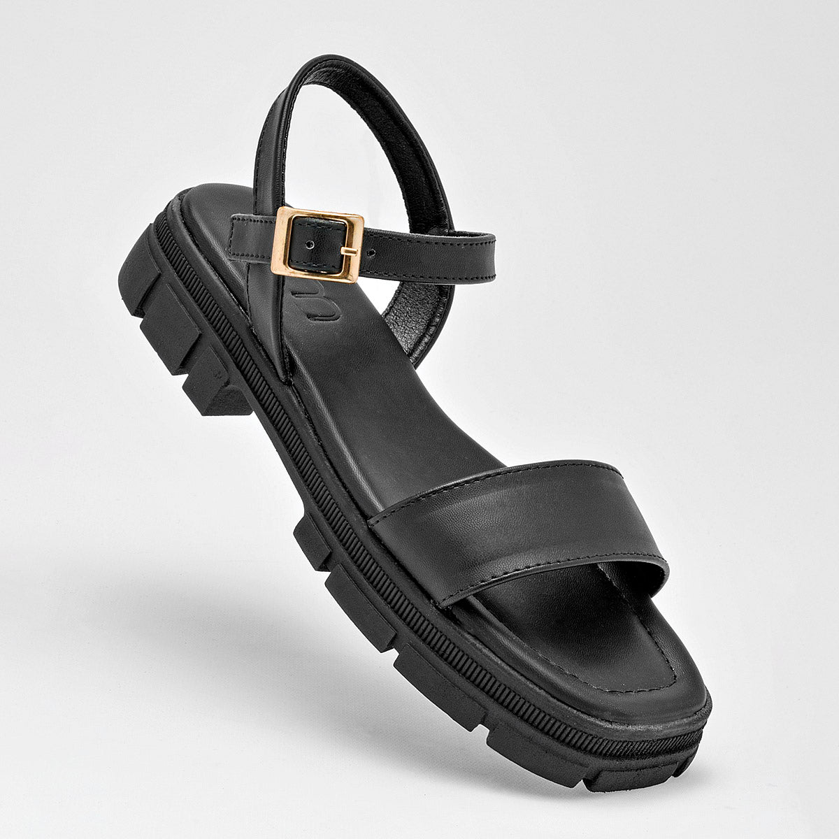 Esta elegante sandalia destalonada presenta un diseño moderno y sofisticado. La parte trasera de la sandalia se destaca con una pulsera ajustable que envuelve delicadamente el tobillo. La suela, con su diseño adelantado, proporciona comodidad y soporte adicional al caminar.