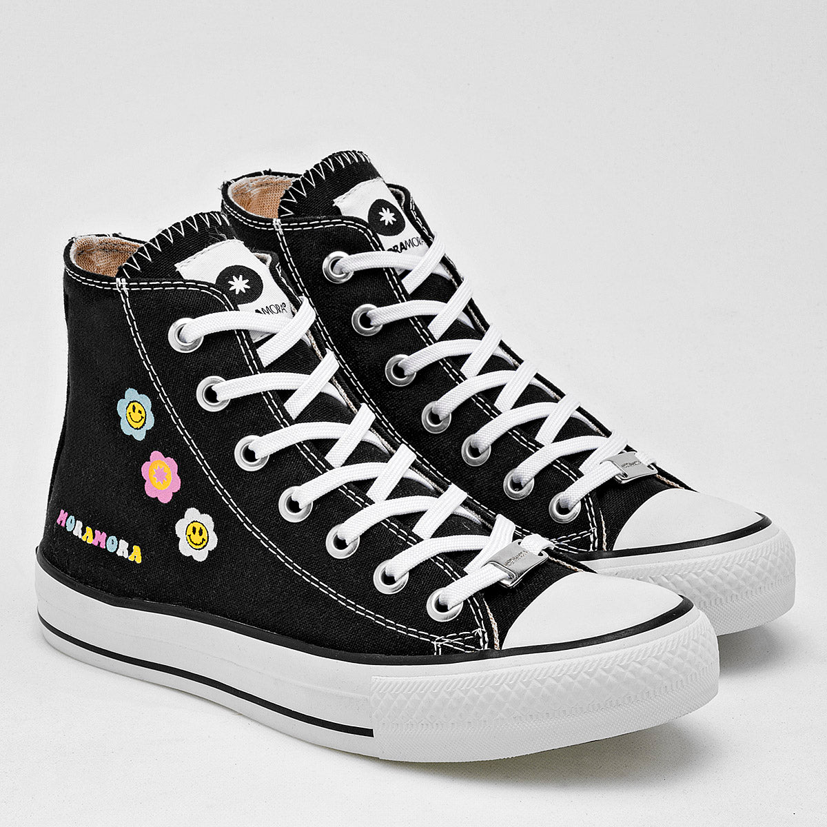 Este cautivador tenis bota para dama combina la elegancia del negro con la frescura del blanco, creando un calzado que destaca por su estilo y versatilidad. Las agujetas blancas no solo aseguran un ajuste cómodo, sino que también añaden un elemento estilizado al calzado. El logo distintivo de la marca lo convierte en una expresión única de moda y originalidad.