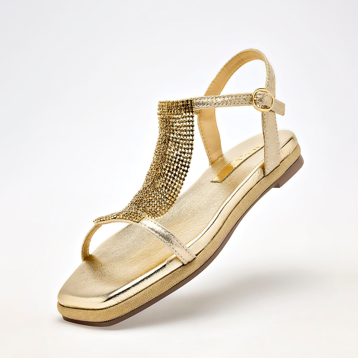 "Brilla con cada paso. La sandalia perfecta para añadir un toque de lujo a tu estilo."